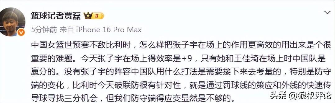 媒体人球圈赵探长发文点评:确实打不过比利时,这个有预想到,外线差距太大了。