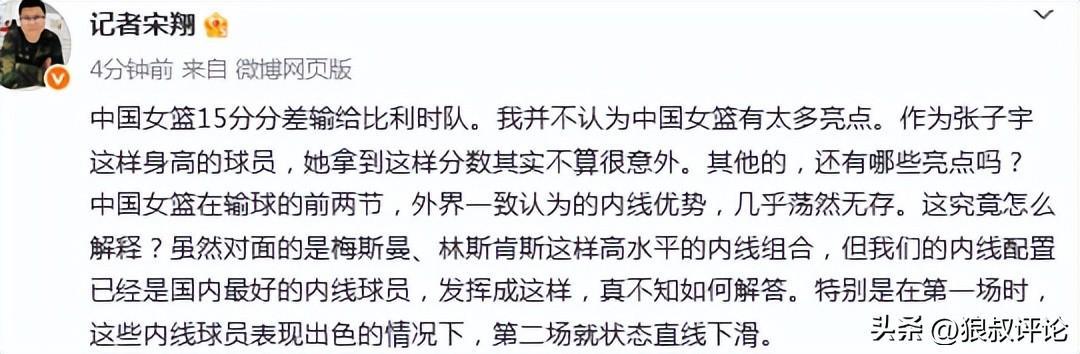 中国女篮15负完败比利时引热议 记者吐槽内线优势,几乎荡然无存